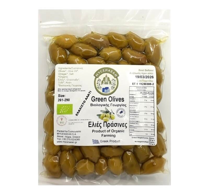 Βιολογικές ελιές πράσινες σε ελαιόλαδο με ελάχιστο αλάτι vacum 200g