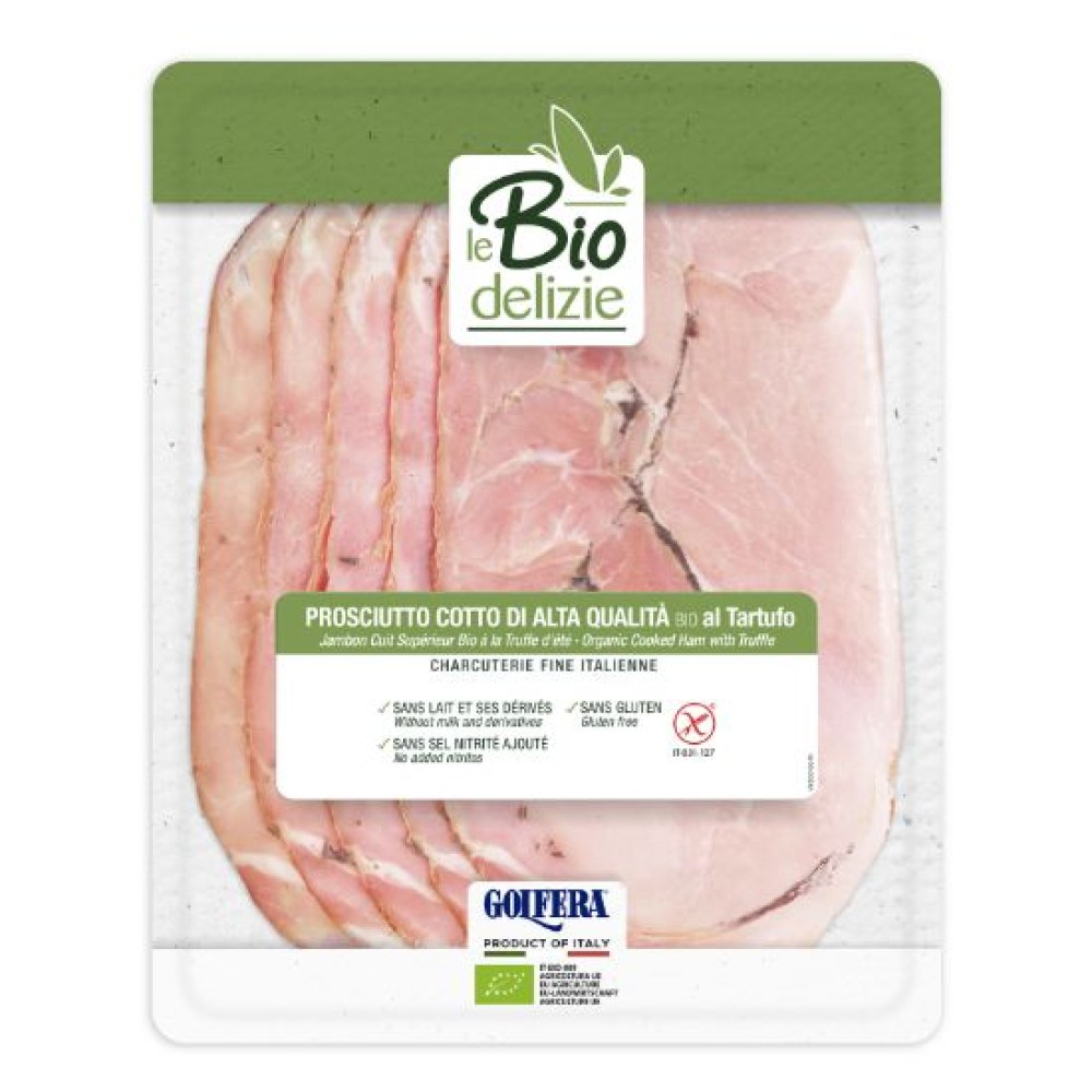 Premium μαγειρεμένο ζαμπόν ανώτερης ποιότητας από την Golfera, φτιαγμένο με πλούσια και εκλεπτυσμένη συνταγή, εμπλουτισμένη με εκλεκτή μαύρη τρούφα.