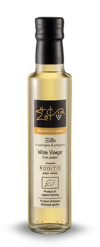 Πληροφορίες: Στο λευκό βιολογικό μας ξίδι από Ροδίτη εμβαπτίζονται για μερικές μέρες φλούδες Χιώτικου μανταρινιού μαζί με μείγμα ολόκληρων μπαχαρικών όπως κανέλα, γαρύφαλλο και μπαχάρι. Το αποτέλεσμα είναι ένα ξίδι με πολύπλοκο αρωματικό μπουκέτο, κατάλληλο για πράσινες σαλάτες με εσπεριδοειδή, μαρινάρισμα λαχανικών και ψαριών, καθώς και για λευκές vinaigrette σε συνδυασμό με απαλές μουστάρδες και αρωματικό μέλι.