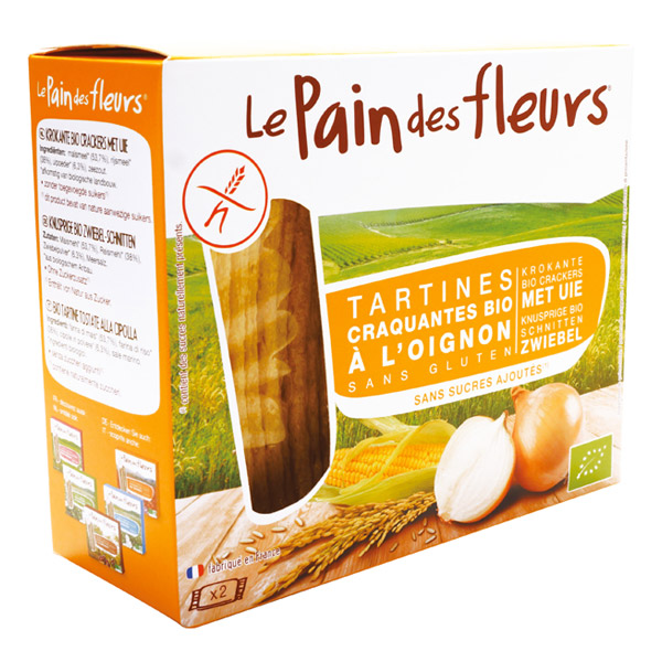 Βιολογικές τραγανές φρυγανιές με κρεμμύδι χωρίς γλουτένη και ζάχαρη.