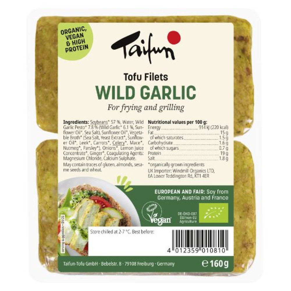 Ένα must για όλους εκείνους που αγαπούν το σκόρδο, αλλά και όσους αναζητούν νέες γεύσεις που απογειώνουν τον ουρανίσκο. Το φρέσκο άγριο σκόρδο σε συνδυασμό με καρυκεύματα και μυρωδικά, δίνει στο φιλέτο τόφου μια μοναδική γεύση. Τηγανίστε ελαφρώς, ψήστε για λίγο στο μπάρμπεκιου καλύπτοντας με ελάχιστο λάδι ή στο grill σε δισκάκι σχάρας. Συνοδεύεται τέλεια με ζυμαρικά, πατάτες ή λαχανικά.