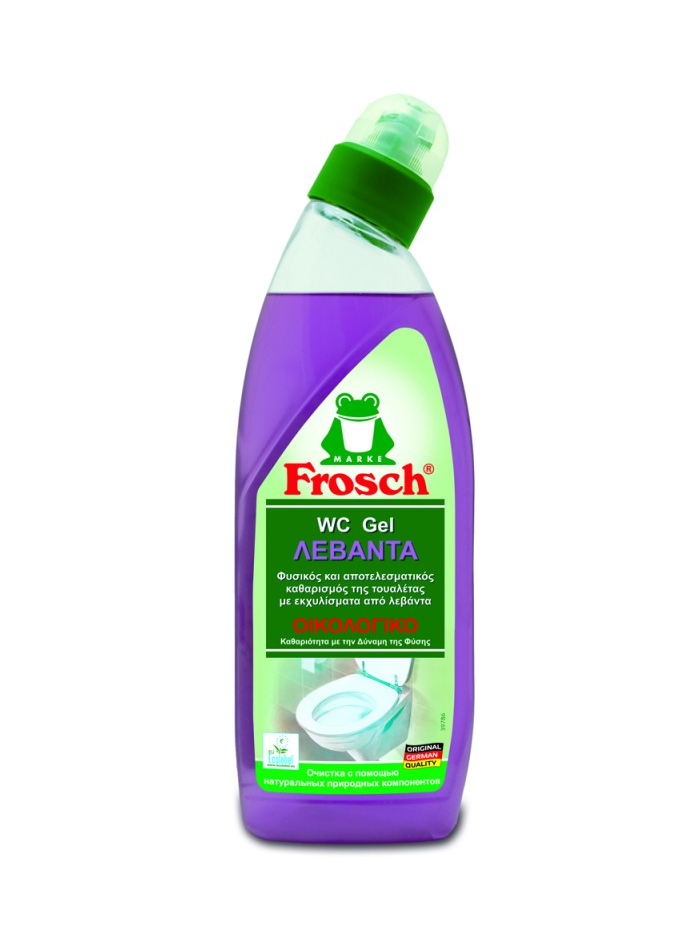 Το Frosch καθαριστικό λεκάνης με λεβάντα, είναι ένα ισχυρό καθαριστικό τουαλέτας που αφαιρεί την επίμονη βρωμιά, το πουρί και τα υπολείμματα αλάτων και από τα πιο απόκρυφα σημεία της λεκάνης. Δρα φυσικά χάρη στην πανίσχυρη φυσική διασπαστική και καθαριστική ικανότητα των εκχυλισμάτων λεβάντας. Εξαλείφει ταυτόχρονα τις δυσάρεστες οσμές και αφήνει ένα ευχάριστο άρωμα λεβάντας μεγάλης διαρκείας.