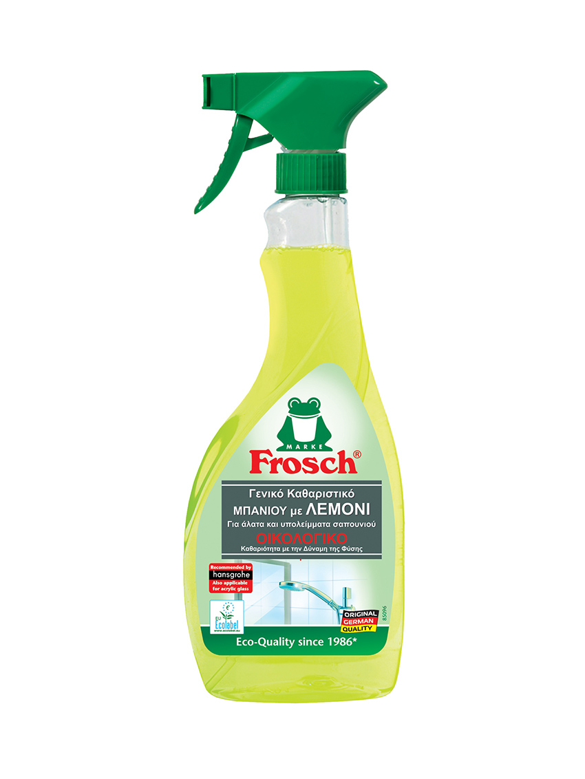 Πανίσχυρο καθαριστικό για το μπάνιο με την δύναμη των εκχυλισμάτων λεμονιού. Δρα αποτελεσματικά κατά τα άλατα και τα υπολείμματα σαπουνιού, εξαφανίζει βρομιές και στίγματα από νερό, δημιουργώντας επιφάνειες που λάμπουν από καθαριότητα. Εκτός από το μπάνιο μπορεί να χρησιμοποιηθεί και στην κουζίνα αλλά και άλλα σημείο του σπιτιού σας. Εξαιρετική αποτελεσματικότητα με ευχάριστο άρωμα.