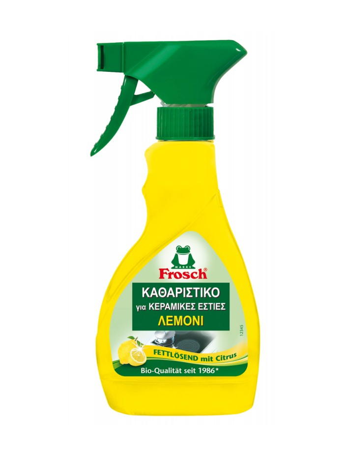 Αποτελεσματικό καθαριστικό για κεραμικές και επαγωγικές εστίες φούρνων. Η συνταγή με εκχυλίσματα λεμονιού καθαρίζει σε βάθος και αφήνει ένα ευχάριστο άρωμα φρεσκάδας. Αφαιρεί την βρωμιά και ξηραμένες τροφές.