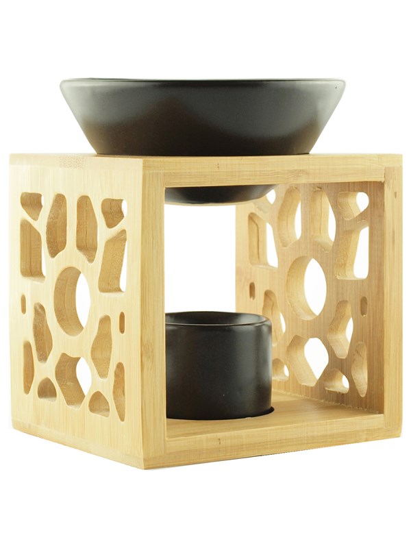 Αρωματοδοχείο (10cm) KIBO B με βάση από μπαμπού και χώρος για το νεράκι και το ρεσώ από πορσελάνη .