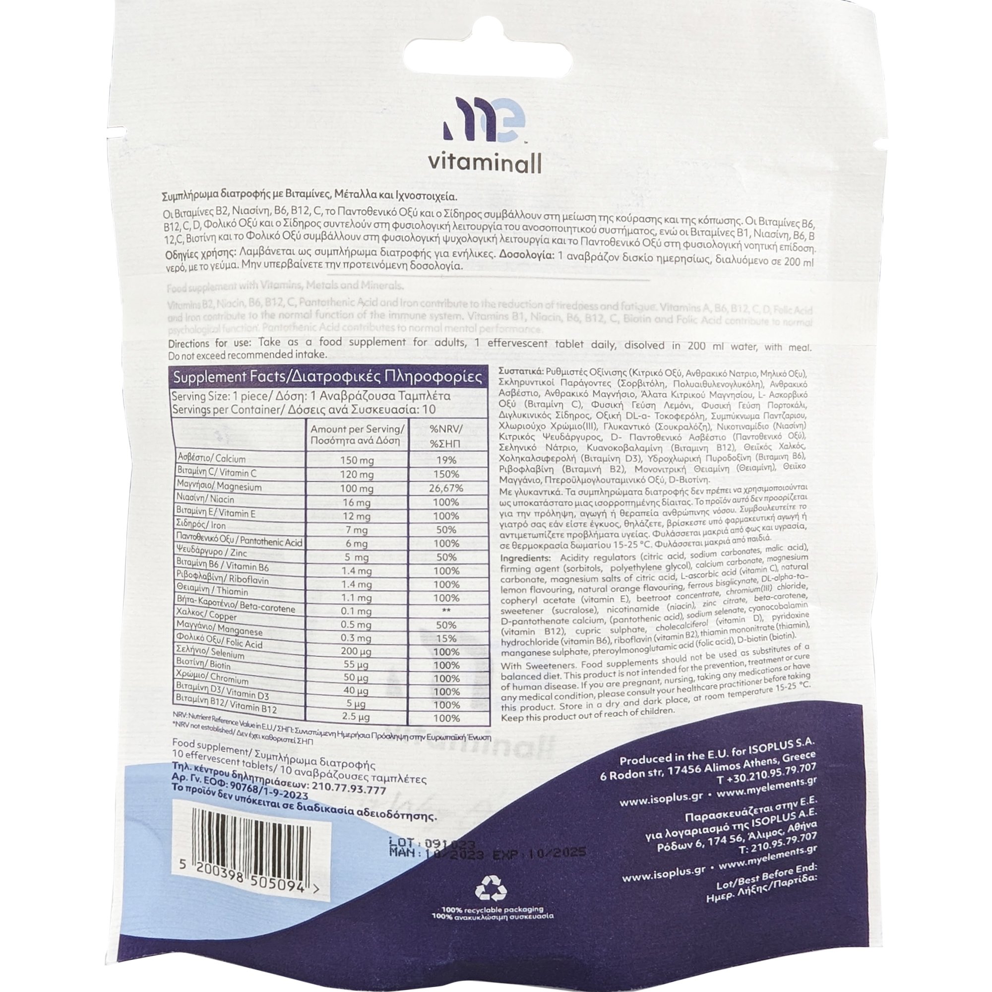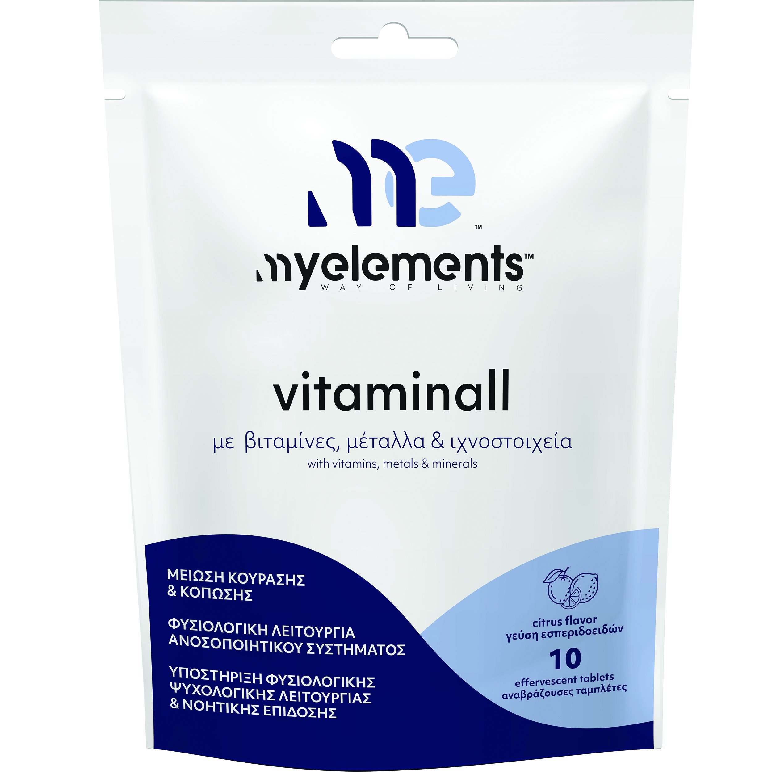 My Elements Vitaminall Συμπλήρωμα Διατροφής με Βιταμίνες, Μέταλλα & Ιχνοστοιχεία Γεύση Εσπεριδοειδών 10 Αναβράζουσες Ταμπλέτες
