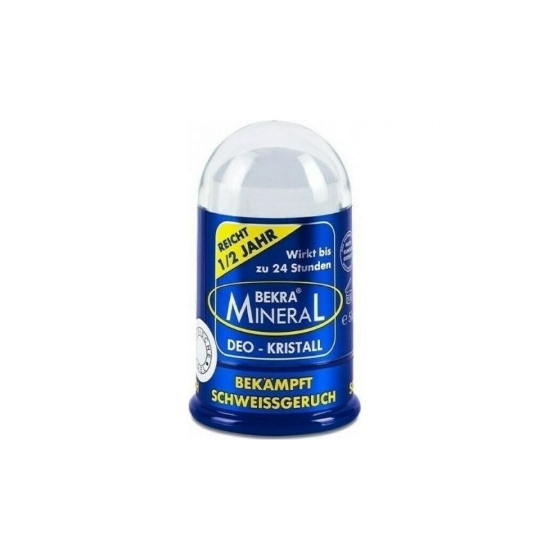 Αποσμητικό σώματος με κρύσταλλο της Bekra σε μορφή στικ. Ο κρύσταλλος είναι ένα φυσικό, άοσμο αποσμητικό που προέρχεται από καθαρό ορυκτό. Διαθέτει αντιιδρωτική δράση, προστατεύοντας από τις δυσάρεστες οσμές του σώματος, χωρίς όμως να εμποδίζει την αναπνοή του δέρματος. Δεν περιέχει αλκοόλ, αρώματα, parabens, άλατα αλουμινίου ή άλλα βλαβερά συστατικά ενώ δεν προκαλεί αλλεργίες και ερεθισμούς.